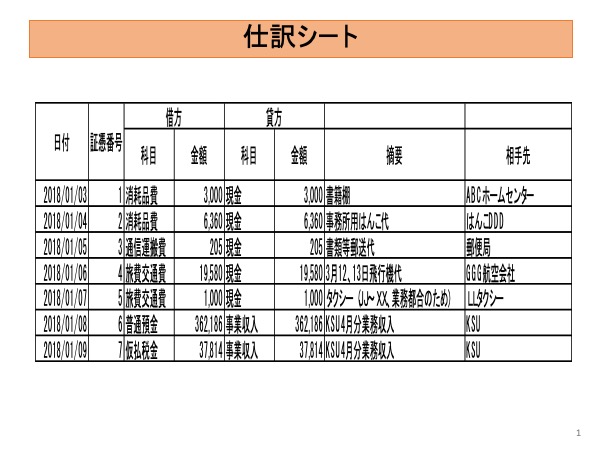 ・仕訳シートや勘定科目シートを提供し、そのシートの使い方や記載方法をアドバイスする。