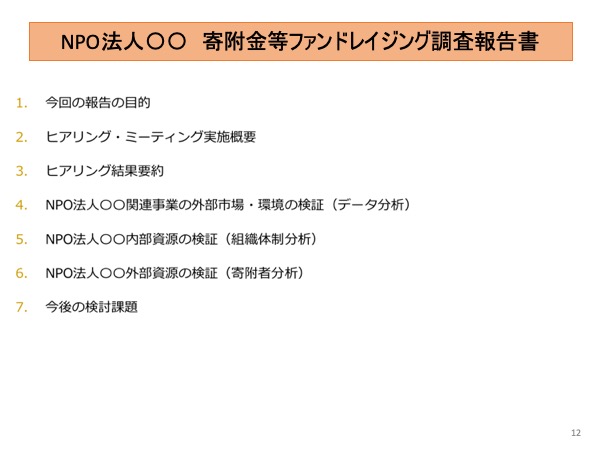 財務・組織・資金・業務ヒアリング2日、報告書作成と提案で1日合計3日で25万円