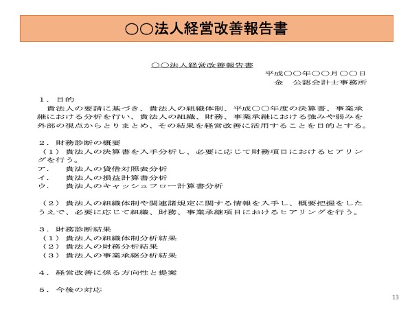 ⇒法人固有の内部統制の整備や経営改善につなげる助言をします。